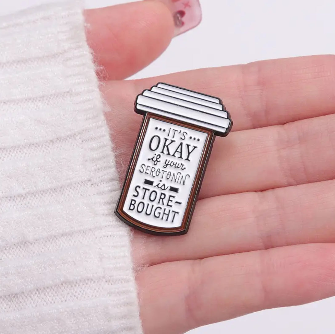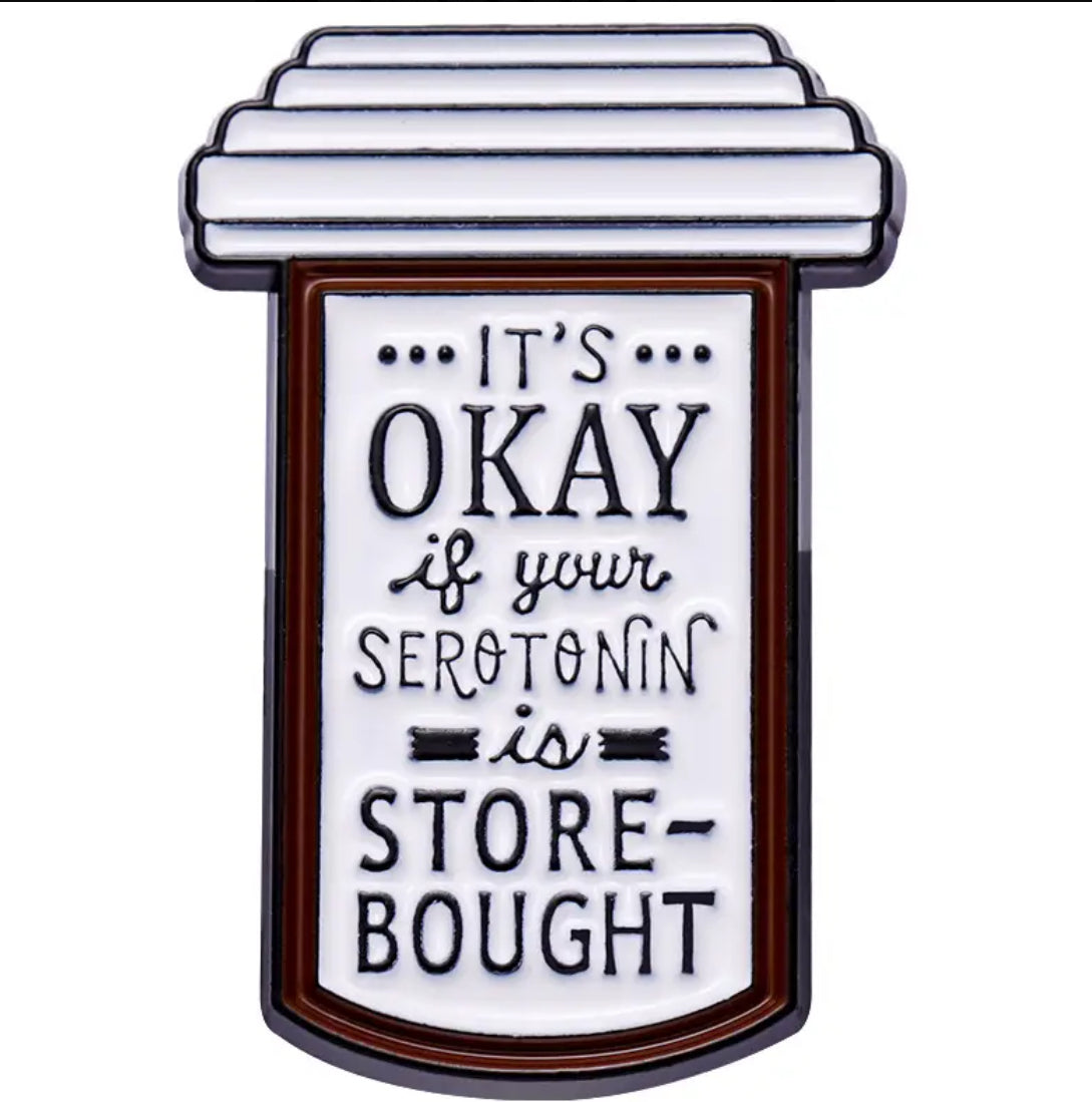 Get ready to wear your serotonin with a twist! Introducing the "It’s OK If Your Serotonin Is Store Bought" pin – available for pre-order. Because let's face it, sometimes happiness comes in a package, and we're totally here for it!