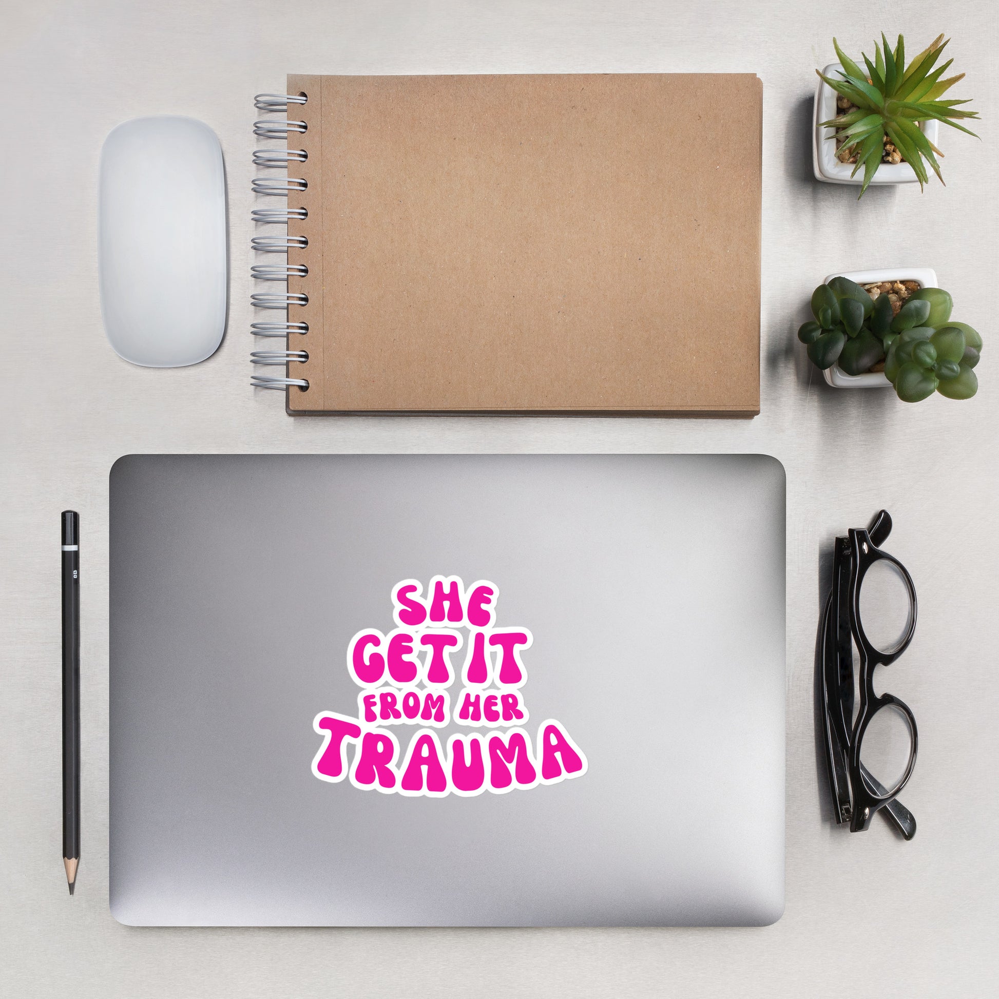 She Get It From Her Trauma (Pink Font) - Bubble-free stickers